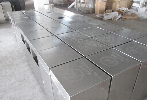作為一家知名購物中心,采購不銹鋼垃圾桶要求極高。垃圾桶的選擇不容馬虎,兩者搭配得融入購物中心文化。我們欣方圳公司業(yè)務(wù)部人員,根據(jù)包頭茂業(yè)百貨來的圖樣,大規(guī)模的生產(chǎn)一款C60不銹鋼果皮箱。本款采購的不銹鋼果皮箱規(guī)格為:350*350*720mm,顏色為砂光。采用201#不銹鋼厚度1.2mm,其中8個帶煙灰缸,42個不帶煙灰缸,內(nèi)桶為鍍鋅板。正面蝕刻茂業(yè)百貨字樣及標(biāo)識。此款不銹鋼垃圾桶頂上開門,頂上蓋子固定活動。外部光滑明亮,簡單大方的方形設(shè)計(jì),高貴不失風(fēng)度。結(jié)合包頭茂業(yè)百貨購物中心,讓更多的顧客有愉快的心情購物。