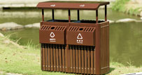 陜西漢中園林綠化公司定制戶外鋼木分類垃圾桶