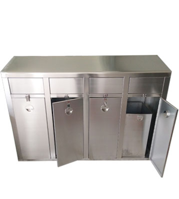 小區(qū)垃圾分類站點(diǎn)四類垃圾分類垃圾桶,不銹鋼無(wú)疑是較為理想的材質(zhì)。它戶外防銹蝕效果好,表面金屬光澤高檔美觀,污漬也易清理。不銹鋼分類桶產(chǎn)品款式造型易定制,不受尺寸大小限制,滿足個(gè)性化需求,擺放于惠