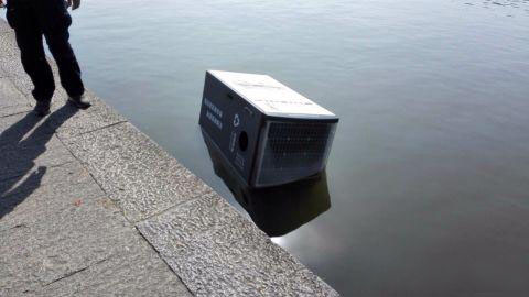 原來,趙某推進(jìn)西湖的垃圾桶,是去年年初投入使用的太陽能垃圾桶,在西湖邊只有十臺(tái)。警方從垃圾桶生產(chǎn)廠家了解到,這款垃圾桶售價(jià)為29800元,目前還需要物價(jià)局的工作人員進(jìn)行一次價(jià)格鑒定。趙某因?yàn)樽约旱牟焕碇切袨椋壳耙驯痪叫淌戮辛簟?br /> 從去年2月分開始,十組貼有西湖十景繪畫的太陽能智能壓縮垃圾箱亮相杭州西湖白堤。據(jù)介紹,垃圾箱通過不同投放口進(jìn)行垃圾分類引導(dǎo),內(nèi)部設(shè)有壓縮系統(tǒng),用箱頂?shù)奶柲茈姵匕骞╇姡勺詣?dòng)對(duì)投入的垃圾進(jìn)行壓縮。