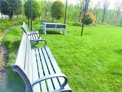 占地69.5萬平方米的生態(tài)園是上海國際旅游度假區(qū)的組成部分。行走在園內(nèi),記者發(fā)現(xiàn),這個生態(tài)園基本保留了川沙農(nóng)村的自然風(fēng)貌,曾經(jīng)鄉(xiāng)村的小河蜿蜒流淌,河邊蘆葦叢叢。而仔細(xì)看會發(fā)現(xiàn),道路旁、草坪上的靠背長椅上標(biāo)注著:本長椅由3700個牛奶飲料紙包裝再生利用制成;垃圾桶上標(biāo)注著:我是用900個牛奶飲料紙包裝再生利用制成的哦。