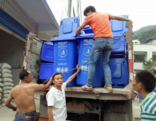 重慶城口縣明通鎮將垃圾桶免費發放到對公路沿線的白臺村、金六村,解決公路沿線人員居住密集場所垃圾池臭氣熏天,蚊蠅滿天飛等問題,不斷改善農村環境衛生狀況,提高群眾生活質量。
