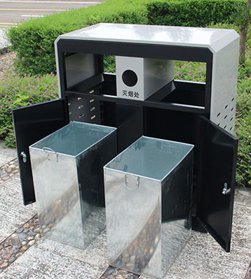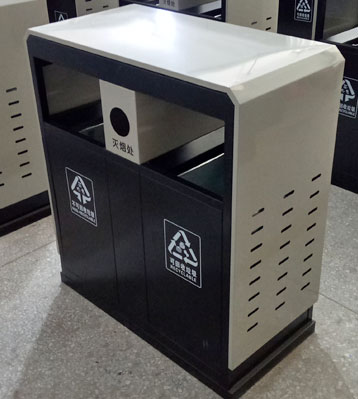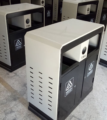 戶外鋼板烤漆環(huán)保垃圾桶批量生產圖