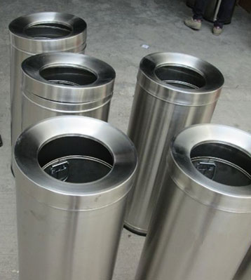 欣方圳高頭斜口煙灰桶投放垃圾口工藝為模具成形,邊角精細打磨拋光處理,圓滑不割手!