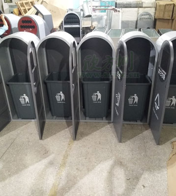 • 產品材質:欣方圳鋼制垃圾分類收集容器采用優質冷軋鋼材料經剪鈑下料、折彎、沖壓、焊接、打磨、等工藝:表面經過除油、噴砂防銹處理后,再進行酸洗磷化處理;表面清理干燥后整體進行靜電噴涂或烤漆處理,靜電噴涂是經過流水線高溫固化爐固化后再出爐冷卻,加工后的塑粉附著力強,不易剝落;