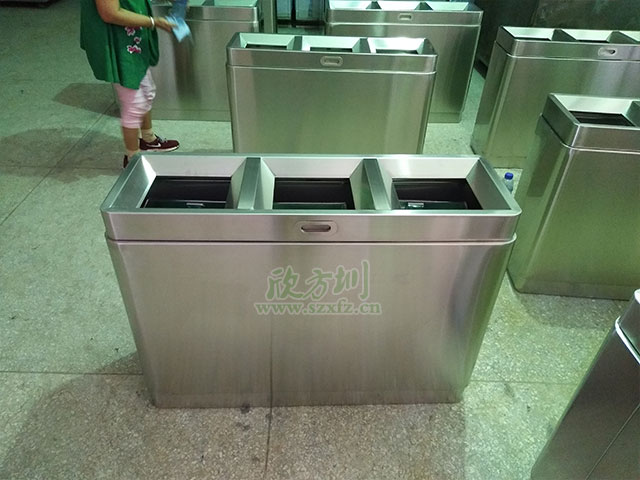 • 使用范圍:欣方圳三分類不銹鋼垃圾桶表面光滑、亮麗,是電梯口、寫字樓、學校、物業、賓館、酒店、機場、汽車站等擺放的首選。