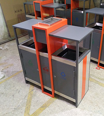 • 產品材質:欣方圳戶外鋼制烤漆分類垃圾桶采用優質冷軋鋼材料經剪鈑下料、折彎、沖壓、焊接、打磨、等工藝:表面經過除油、噴砂防銹處理后,再進行酸洗磷化處理;表面清理干燥后整體進行靜電噴涂或烤漆處理,靜電噴涂是經過流水線高溫固化爐固化后再出爐冷卻,加工后的塑粉附著力強,不易剝落;