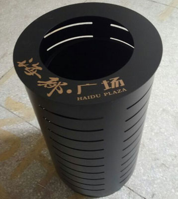 戶外圓形鋼制烤漆垃圾桶桶頭絲印
