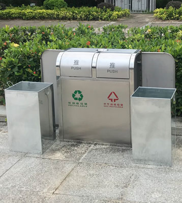 海南東方市屬熱帶季風(fēng)海洋性氣候,企業(yè)為提升沿海城市戶(hù)外垃圾桶耐用性,選用304優(yōu)質(zhì)不銹鋼材質(zhì)制作環(huán)保分類(lèi)垃圾桶同時(shí),表面再做灰色噴塑處理...