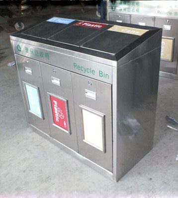 • 使用范圍:不銹鋼三分類垃圾回收箱表面光滑、亮麗,是電梯口、寫字樓、學校、物業、賓館、酒店、機場、汽車站等擺放的首選。