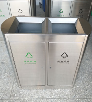 • 使用范圍:不銹鋼室內分類環保垃圾桶表面光滑、亮麗,是電梯口、寫字樓、學校、物業、賓館、酒店、機場、汽車站等擺放的首選。