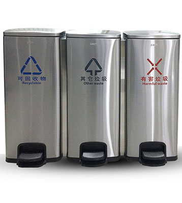 欣方圳90L家用室內不銹鋼腳踏三分類垃圾桶批量生產圖