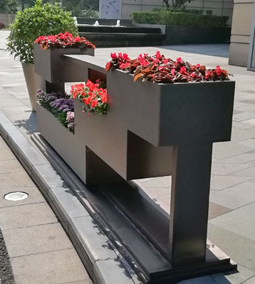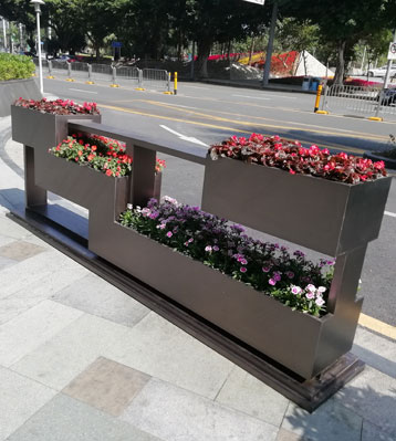 • 產品材質:不銹鋼道路花箱可采用5mm加厚201#/202#/304#不銹鋼材料模壓或焊接成型,金屬亮澤,內外表面光潔,易于清潔,表面可做電鍍壓紋、水鍍、蝕刻、納米鎳、無氰堿性光亮鍍銅工藝效果,無指紋處理高檔大氣;