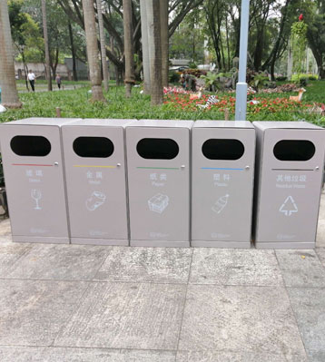• 使用范圍:深圳公園戶外不銹鋼垃圾桶果皮箱陸續擺放于深圳皇崗公園,福田中心公園,兒童公園等戶外垃圾分類收集使用。