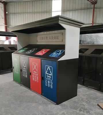 • 產品材質:小區垃圾分類房大容量分類垃圾桶站點整體尺寸制作需求可按地方標準要求定制,常用的制作材質有鍍鋅板、不銹鋼、戶外塑粉靜電噴涂,其工藝特點表現為較高的戶外適應性,表面涂層堅固,不易脫落,抗紫外線以及耐候性強。可回收物投口為藍色,其他垃圾為淺灰色,廚余垃圾綠色,有害垃圾為紅色,顏色搭配美觀,可配套洗手盆投放后清洗。.表面無毛刺、無披鋒,棱角和邊緣做圓角處理.