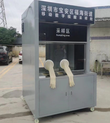 • 產品材質:核酸檢測亭消毒簡單方便,室內采用紫外線殺毒,可以在工作前對采樣亭進行自助消毒,并確保無菌和衛生。采樣人員在核酸采樣亭內與外部人員不產生直接接觸,醫廢和垃圾會進行消殺并進行統一回收處理,不會對周邊環境造成影響。采樣人員通過特制的手套來采集樣本,并透過玻璃進行觀察。樣品采集后,采樣人員將樣本直接放樣本存儲區內,大大減少了面對面接觸,避免了觸摸和呼吸造成的感染。按照“固定采樣點+便民采樣點+流動采樣點”相結合的方式,在復工復產過程當中,核酸檢測采樣點將發揮重要作用。