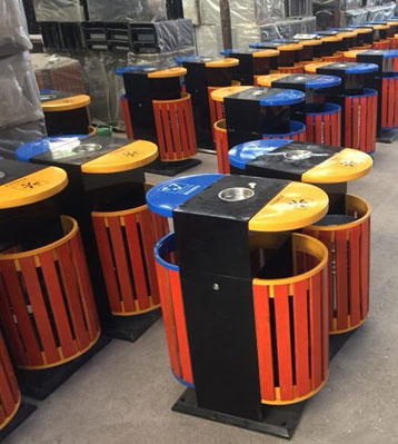 戶外橢圓鋼木分類垃圾桶工廠生產圖