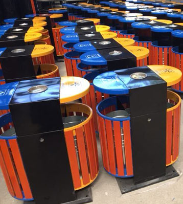 戶外橢圓鋼木分類垃圾桶工廠批量生產圖