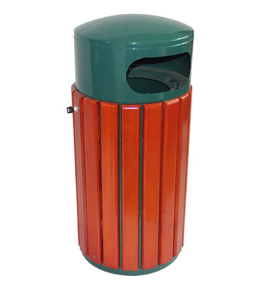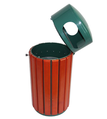 戶(hù)外圓形鋼木單桶垃圾桶產(chǎn)品多角度展示圖