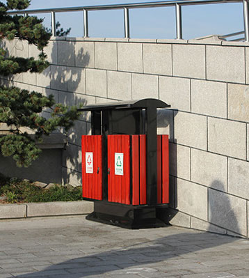 • 產品材質:景區鋼木分類垃圾桶定制可選進口實木(防腐木.紅胡桃.山樟木等)、鋼結構、塑木等。