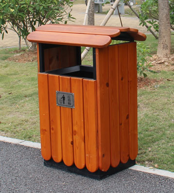 欣方圳木屋鋼木單桶垃圾桶廠家批量生產圖