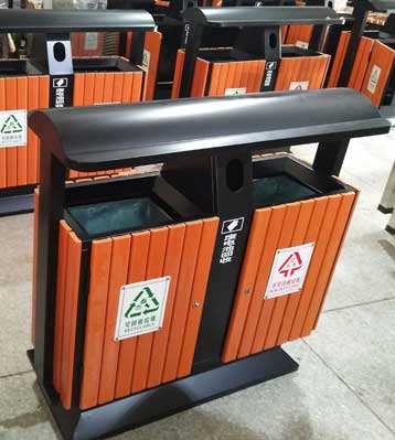 • 產品名稱:戶外馬路鋼木分類垃圾桶