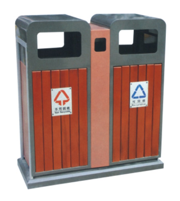 欣方圳戶外景區鋼木分類垃圾桶工廠生產圖
