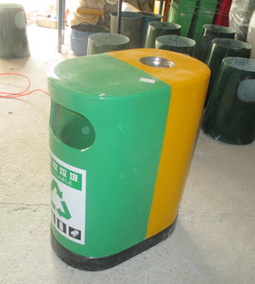 玻璃鋼垃圾桶桶身和內膽部分,采用高級玻璃鋼材質一次成型,經過打磨、除塵 、噴漆等一系列后期工藝然后出成品。