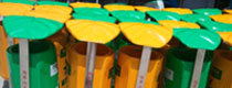 玻璃鋼垃圾桶桶身和內膽部分,采用高級玻璃鋼材質一次成型,經過打磨、除塵 、噴漆等一系列后期工藝然后出成品。