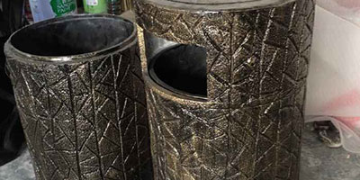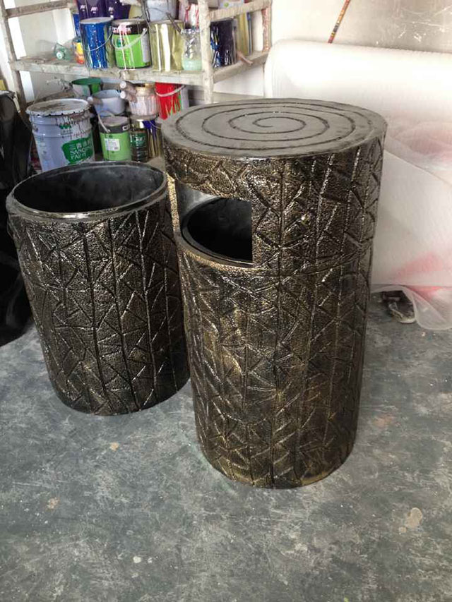 玻璃鋼垃圾桶桶身和內(nèi)膽部分,采用高級(jí)玻璃鋼材質(zhì)一次成型,經(jīng)過(guò)打磨、除塵 、噴漆等一系列后期工藝然后出成品。